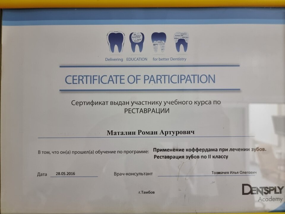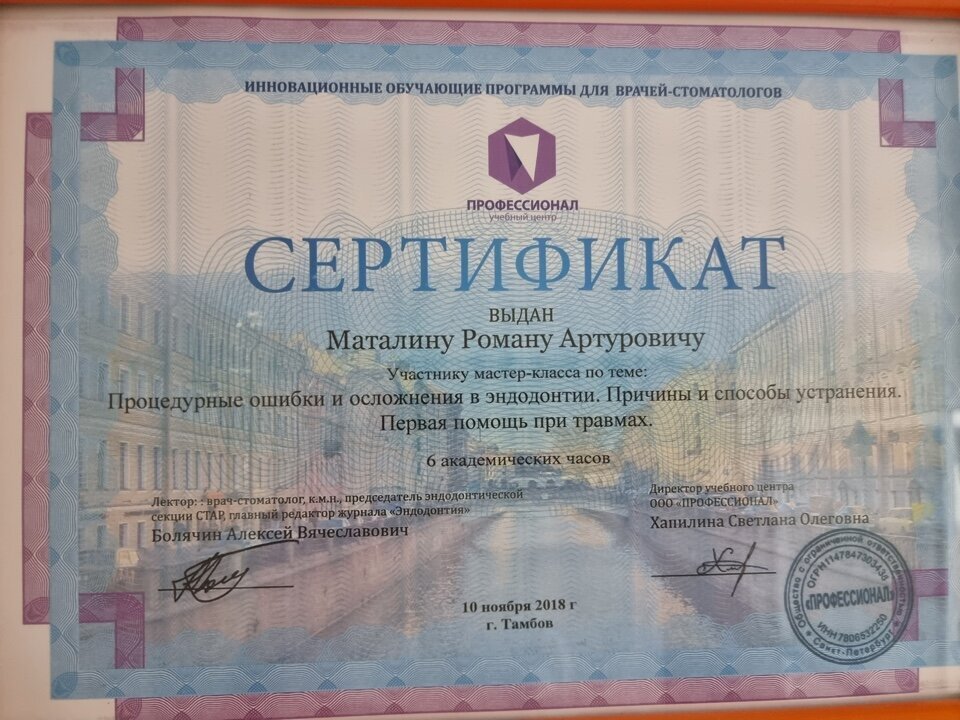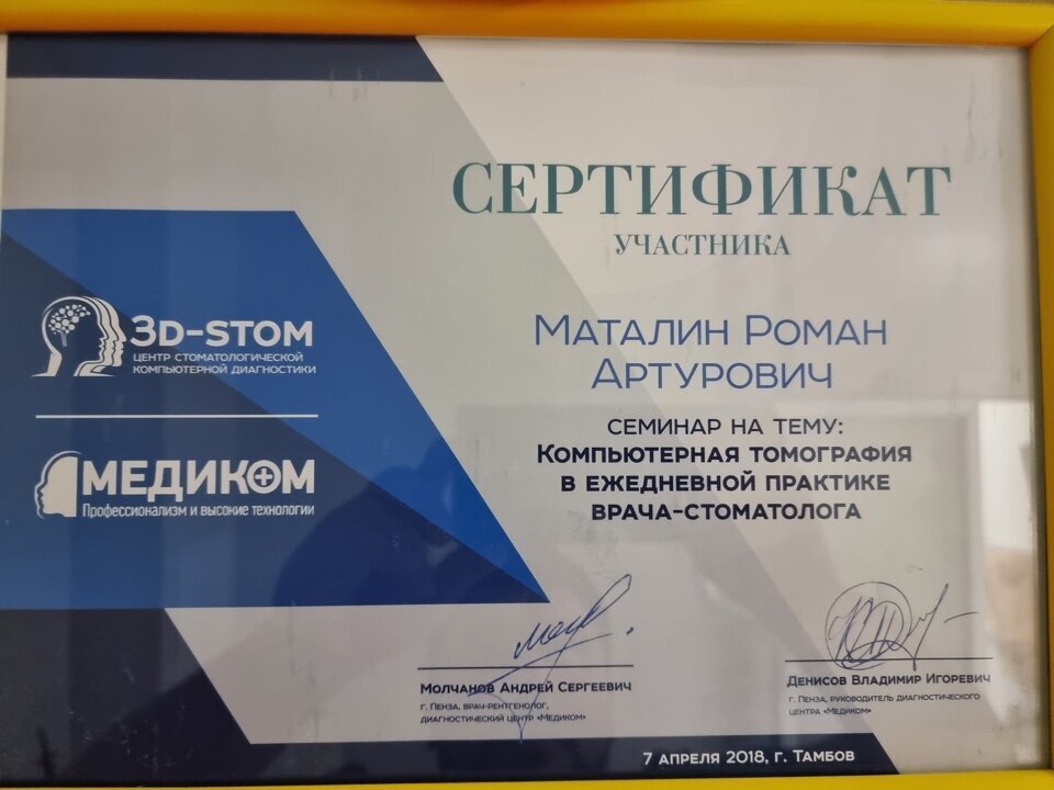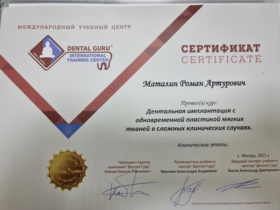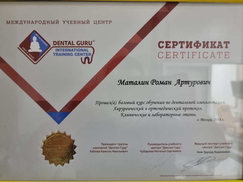 Маталин Роман Артурович является стоматологом-ортопедом, а также работает в сфере стоматологической хирургии. Вы можете обратиться к Роману Маталину, если вам требуется установить имплант или если какой-то из зубов разрушен до такой степени, что пломба ему не поможет. Зубы перед протезированием должны быть должным образом санированы, так что перед обращением к ортопеду лучше посетить стоматолога-терапевта.